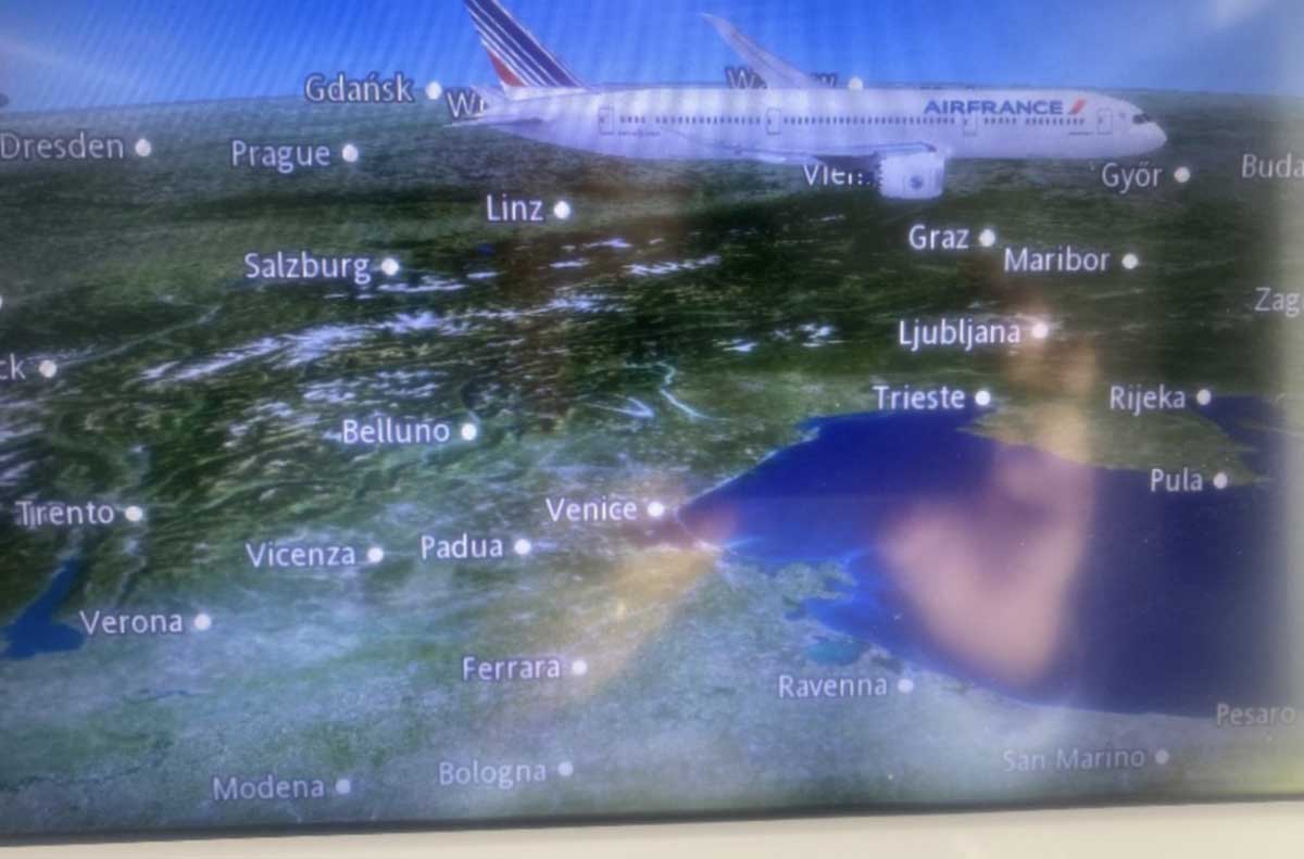 As I fly, I often keep the map tracker on so I can know where I am. We just passed over...